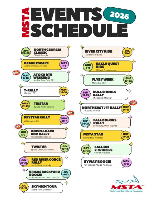 At STAR 2026, we celebrate the journey, the friendships, and the love of the ride. From the Welcome Ceremony to the Closing Banquet and Awards, every moment is an opportunity to share laughter, swap stories, and honor the spirit of the MSTA. Enjoy great food, live camaraderie, and the excitement of the annual bike raffle—all while surrounded by the people and roads that make this rally unforgettable.